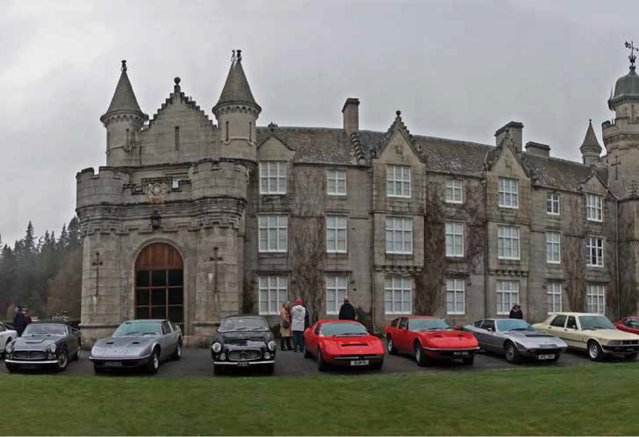 The first evening saw a very elegant group of Maseratisties congregate in the stylish public rooms of the Hotel for pre-dinner drinks, kindly sponsored by PK Supercars; this was followed by an excellent dinner. The following morning was shrouded in mist and drizzles for the 90 mile drive to Balmoral, with a route over Glen Shee but the Grampian Mountains were sadly totally obscured, even the spectacular Lochnagar. The rain cleared a little at Braemar and Royal Deeside but Balmoral looked majestic as we approached from the drive with special parking for the Classics to the front of the Castle! None of the rooms in the main building were open to the public but for the Ballroom with displays of rather gaudy silver ornaments and trophies, two swagger portraits and lots of Landseer oil studies of generations of family pets; sadly not of the quality of ‘Man Proposes . . . .’; Drummond will be pleased to fill in the full title.