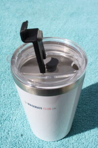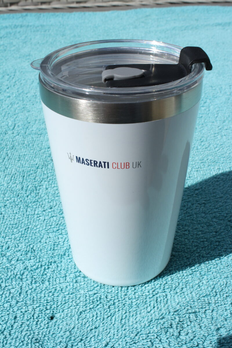 Secure and durable easy-sip lid. Comes complete with Maserati Club storage tube